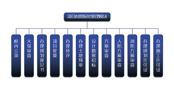 將與前期報(bào)批有關(guān)的程序、計(jì)劃時(shí)間及結(jié)果、必要的附件資料及報(bào)批結(jié)果錄入系統(tǒng),可以按條件生成甘特圖,或時(shí)間進(jìn)度一覽表。