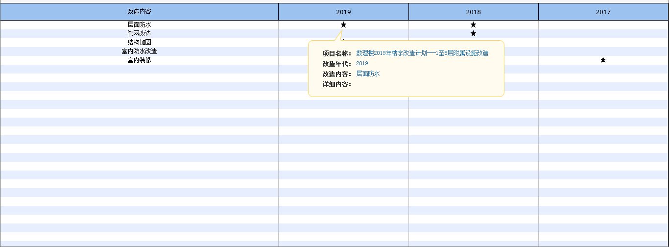 本次開發(fā)的修繕管理模塊,主要是對項(xiàng)目申報(bào)、項(xiàng)目的展示等方面進(jìn)行了針對性開發(fā)。主要特點(diǎn)如下: