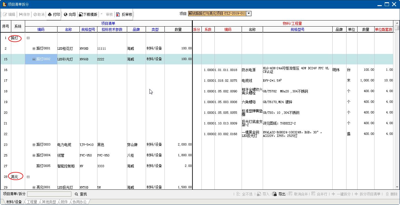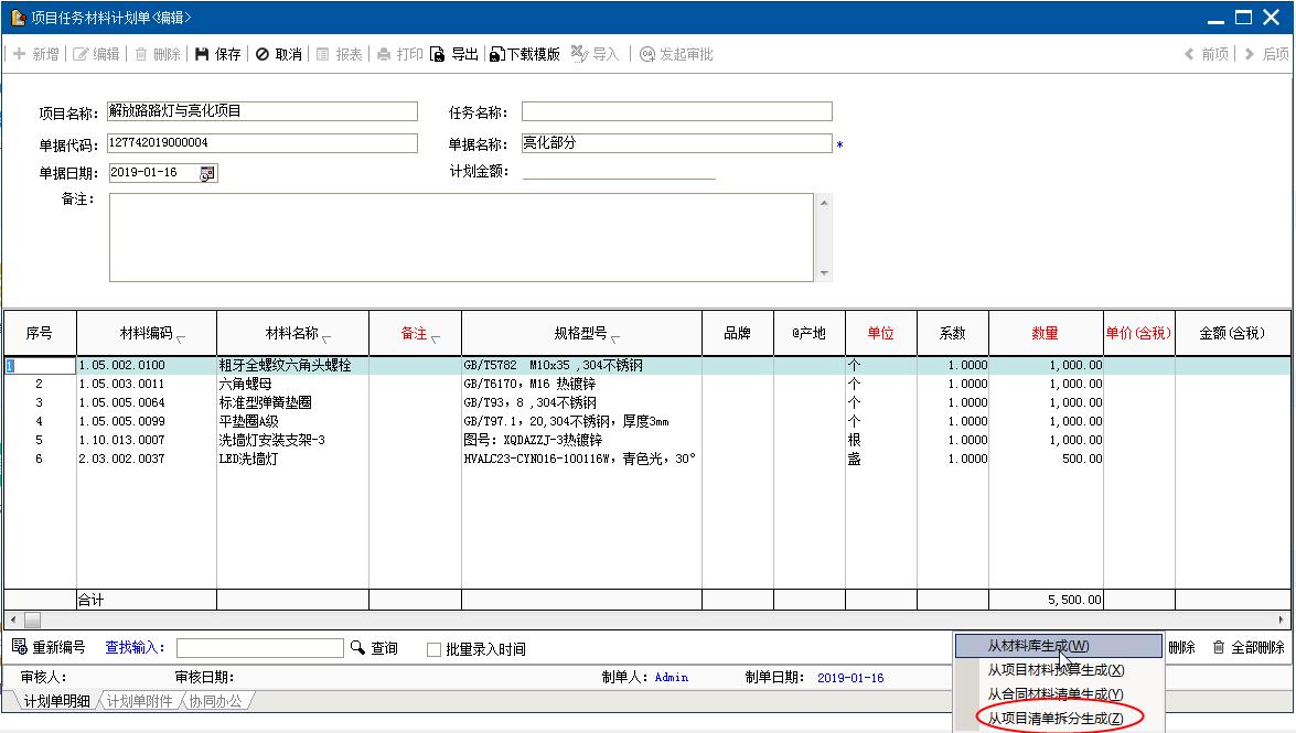 ◆ 任務(wù)材料計劃(從項目清單拆分明細(xì)生成)