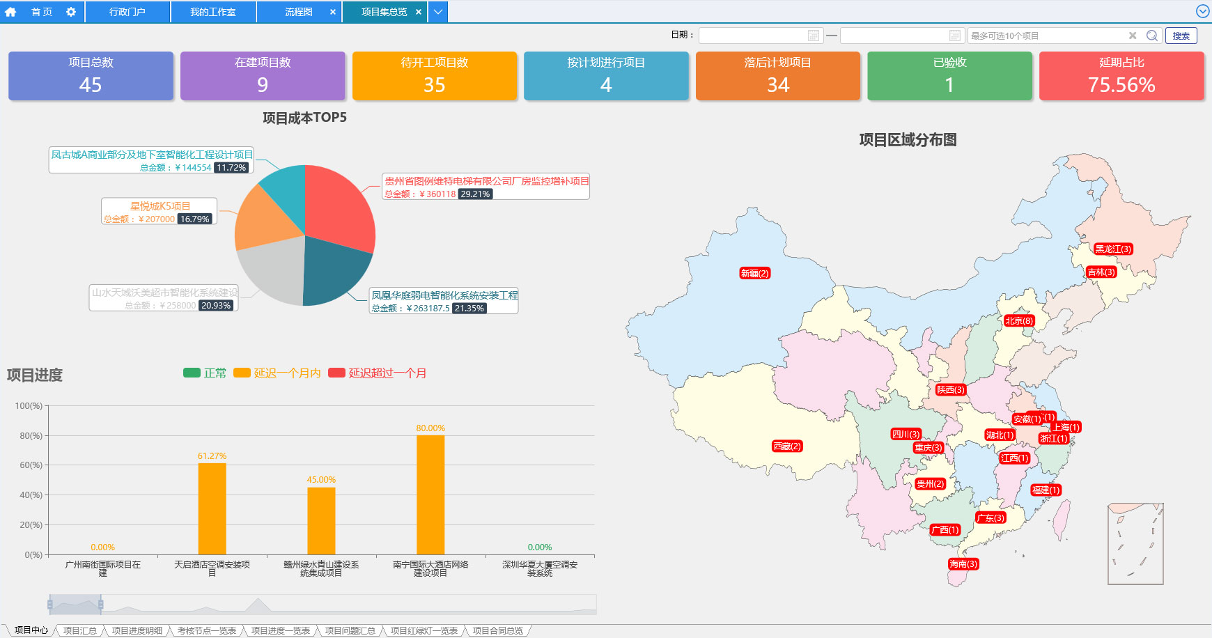 系統(tǒng)集成是公司的主營業(yè)務(wù),項目都分布在城建集團屬下的各個項目工地上,需要對時間進(jìn)度、工作質(zhì)量情況進(jìn)行全面跟蹤。