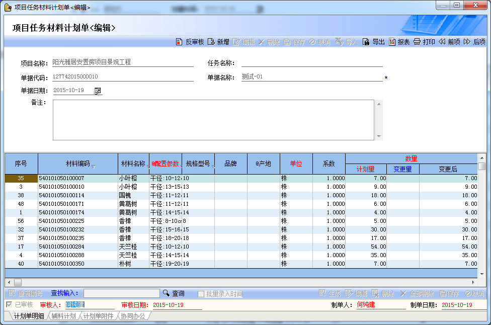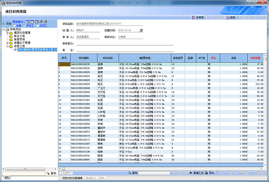 材料主要包括施工過程所需要的各項材料、項目施工現(xiàn)場生活用品以及苗木苗圃。隨時方便查詢某材料設備的供應商和價格,為報價和簽訂合同提供依據(jù)。需要跟蹤材料使用情況,對材料成本使用進行控制。