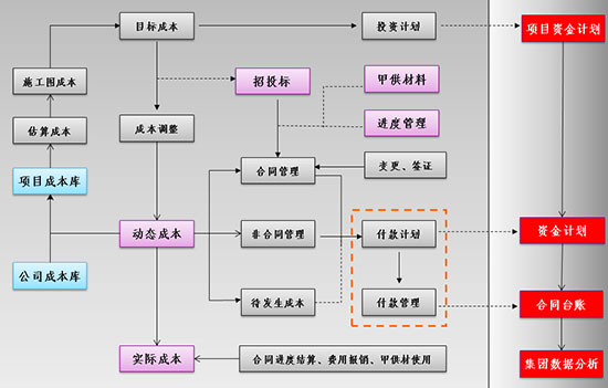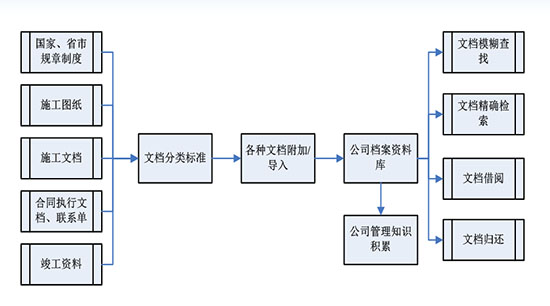 以項目管理為核心,以掌握項目主要環(huán)節(jié)進度、控制項目成本、提高運作效率和管理效果為目標,從項目前期報批、招投標管理、合同簽訂及執(zhí)行管理、材料設備管理,到施工與驗收管理、工程決算的整個過程進行全面的掌握與控制,在這個過程中,資料的產生與管理也融匯其中。