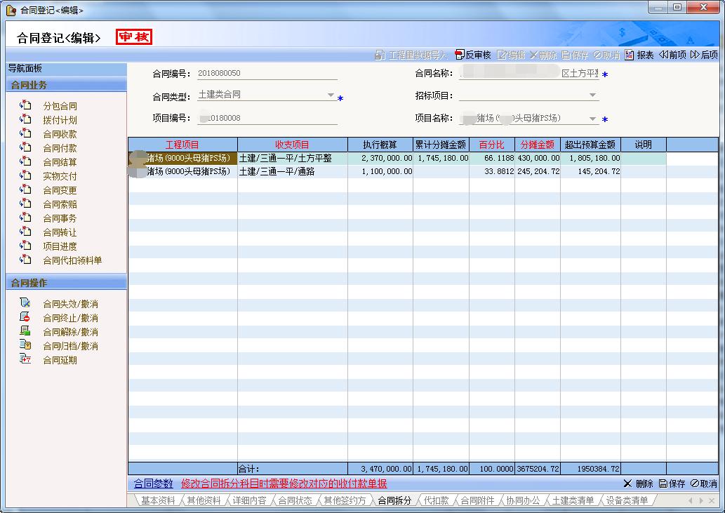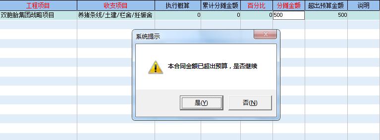 合同分?jǐn)偨痤~大于集團(tuán)審核的執(zhí)行概算金額,系統(tǒng)動(dòng)態(tài)預(yù)警。