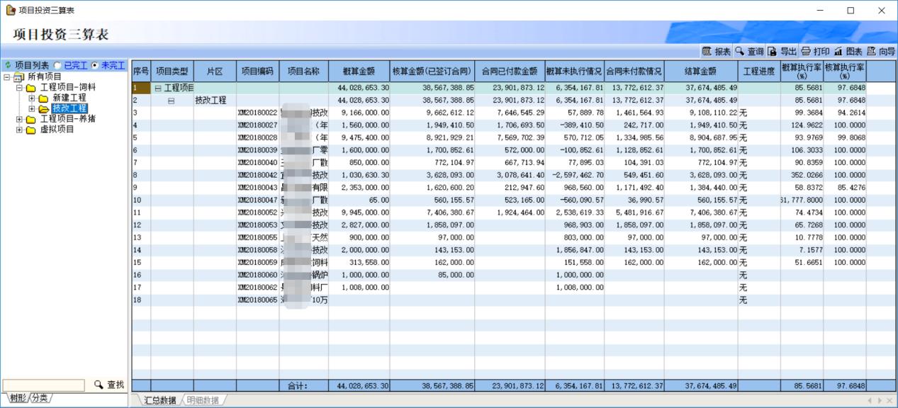 ★ 項(xiàng)目投資三算對(duì)比表:概算金額(執(zhí)行概算)、核算金額(招標(biāo)合同簽定)和結(jié)算金額(竣工結(jié)算)的投資額度計(jì)算動(dòng)態(tài)對(duì)比分析,將工程進(jìn)度與執(zhí)行率結(jié)合,及時(shí)預(yù)警異常情況。