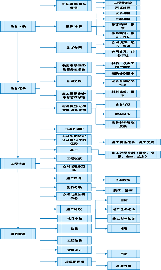 衡誠電力的業(yè)務(wù)是從接到項(xiàng)目商機(jī)開始:項(xiàng)目跟蹤、投標(biāo)——中標(biāo)——簽訂合同——施工組織——設(shè)計、采購——工程實(shí)施——進(jìn)度款收取——電業(yè)協(xié)調(diào)事務(wù)——施工驗(yàn)收——質(zhì)!(xiàng)目圓滿完成。