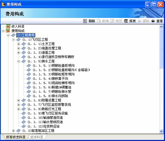 如圖三,在對整個“T3航站樓”工程項目進行WBS任務(wù)分解的基礎(chǔ)上,對整體項目進行CBS費用分解,建立完善的成本核算體系。在項目的不同階段,對投資估算、概算造價、修正概算、預(yù)算/投標(biāo)報價、合同價、結(jié)算價、決算價,按照建設(shè)項目、單項工程、單位工程、各專業(yè)分部分項工程進行分解及管理,實現(xiàn)投資控制。