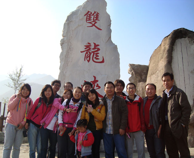2012年10月27日清晨,公司各部門員工乘坐專車前往京西南門頭溝區(qū),開始了為期兩天的旅程。在同事兒們歡聲笑語中,大家終于來到了本次活動的第一站---雙龍峽。雙龍峽是門頭溝的著名的自然風(fēng)景區(qū)、被喻為”小九寨溝”。在這里,大家乘坐獨特的森林小火車,穿梭于幽靜峽谷間,體驗遠離喧囂都市的美景,見證大自然的鬼斧神工。大概行駛了20分鐘,森林小火車將大家?guī)У搅讼膳疄炒a頭。在這里,大家穿上救生衣,駕駛著小船,體驗在百條瀑布匯聚的潭水中進行劃船的樂趣。隨后,大家來到了雙龍峽第一瀑布,在這里,大家游覽了八仙觀洞、三疊泉、、雙龍戲龜、五連環(huán)瀑等多個天河、水潭。歡聲笑語中,大家體驗著大自然的美景,放松了身心,融入了自然。