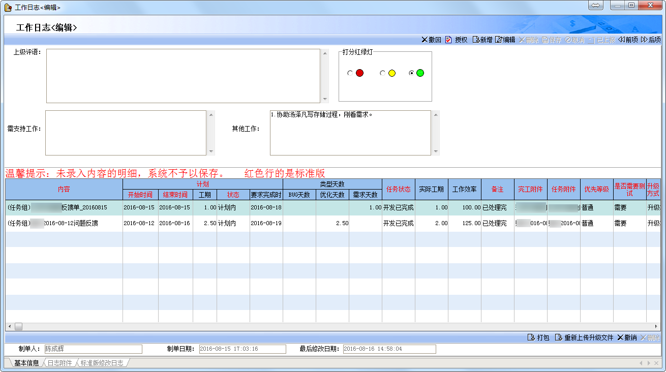 6)研發(fā)部根據(jù)員工的工作日志中標(biāo)準(zhǔn)產(chǎn)品修改記錄日志和更新方法,為后面的產(chǎn)品升級(jí)提供了升級(jí)日志和升級(jí)方式的數(shù)據(jù)基準(zhǔn)。
