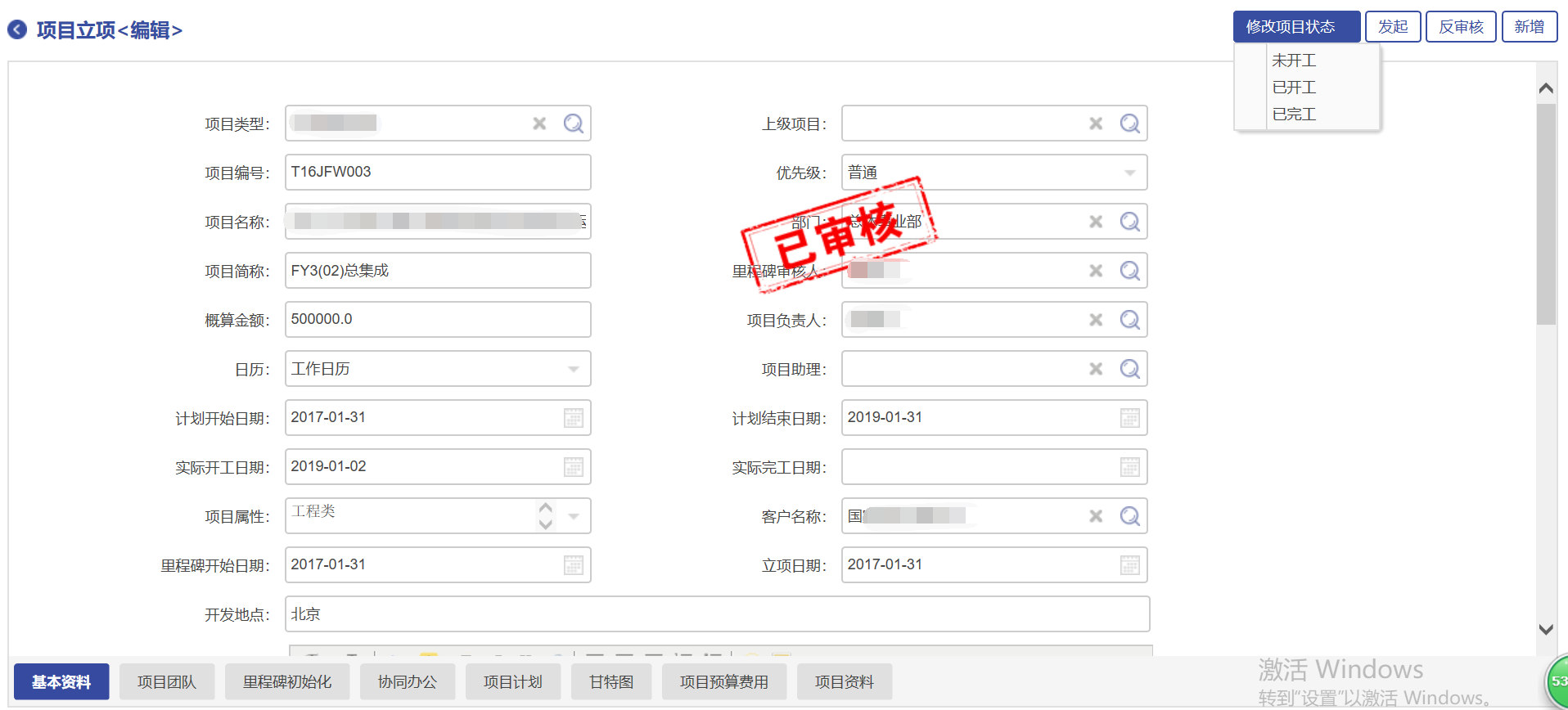 PM2項(xiàng)目管理系統(tǒng)應(yīng)用,完全實(shí)現(xiàn)了只需要點(diǎn)開(kāi)項(xiàng)目庫(kù),查看項(xiàng)目基本信息、團(tuán)隊(duì)信息、里程碑信息、進(jìn)度計(jì)劃、項(xiàng)目文件等內(nèi)容。無(wú)需分開(kāi)到其他地方進(jìn)行查詢。項(xiàng)目基本信息如圖所示: