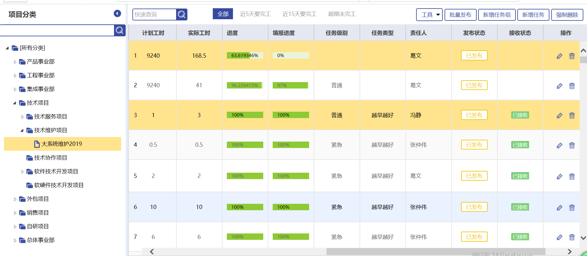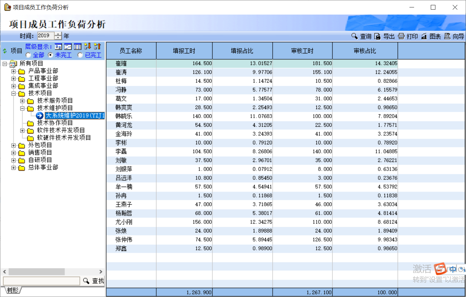 ?     按項(xiàng)目統(tǒng)計(jì)計(jì)劃完成工時(shí)和完成率;