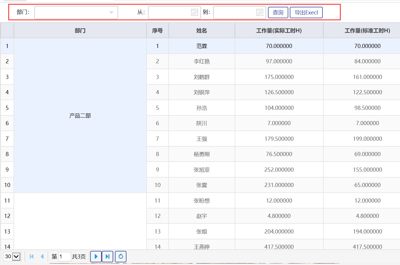 ?     按部門統(tǒng)計(jì)計(jì)劃完成工時(shí)和完成率;
