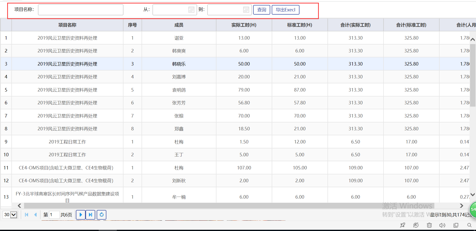 項(xiàng)目人員工作量統(tǒng)計(jì)表: