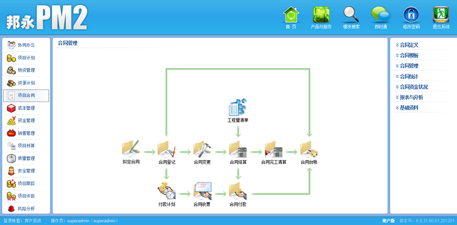 合同及合同管理是企業(yè)經(jīng)營成敗的關(guān)鍵因素,尤其是在甲方投資工程項(xiàng)目管理企業(yè),合同管理更是企業(yè)管理中的重中之重,直接關(guān)系到項(xiàng)目的成本管控和企業(yè)層面上的資金監(jiān)管。邦永公司憑借多年在工程項(xiàng)目企業(yè)的潛心專研以及豐富的軟件開發(fā)、實(shí)施經(jīng)驗(yàn),研發(fā)了貼合甲方投資型企業(yè)管理要求的合同管理軟件。