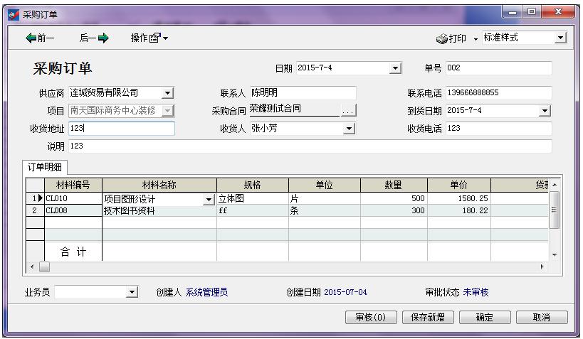 (1)根據(jù)項(xiàng)目新建合同,可以根據(jù)需要建立各種類型的合同;