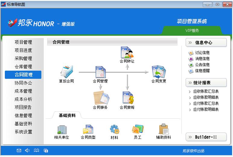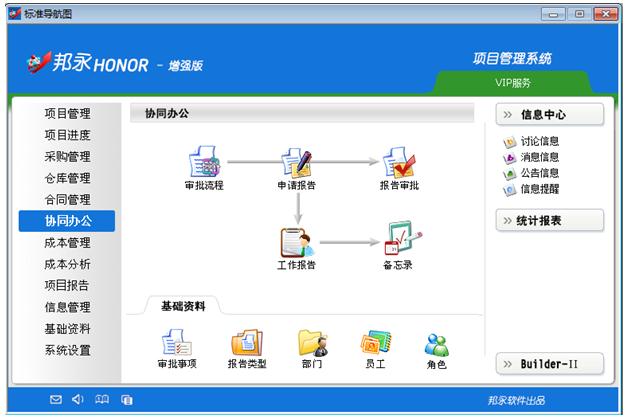 邦永HONOR項(xiàng)目管理軟件是建立于信息化管理基礎(chǔ)上的,它能夠?qū)ζ髽I(yè)整個(gè)業(yè)務(wù)流程進(jìn)行優(yōu)化管理,進(jìn)行事先計(jì)劃、事中控制、事后追蹤,并最終實(shí)現(xiàn)降低成本、提高效率、擴(kuò)大效益的目標(biāo),可以幫助企業(yè)改良原有的管理模式與業(yè)務(wù)流程,是對企業(yè)所有的資源與活動進(jìn)行優(yōu)化配置與效率管理的最佳解決方案。該款軟件包含項(xiàng)目管理、協(xié)同辦公、成本管理、合同管理、物資管理、成本分析、項(xiàng)目報(bào)告、基礎(chǔ)資料、信息管理、Builder工具等子系統(tǒng),特別適用于建筑施工、弱電/集成、安防/消防、智能建筑、節(jié)能環(huán)保、園林綠化、設(shè)備安裝、裝飾幕墻、電力/通信、水利工程、監(jiān)理行業(yè)、科研項(xiàng)目等行業(yè)企業(yè)。