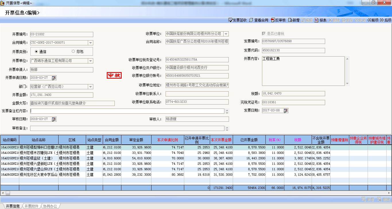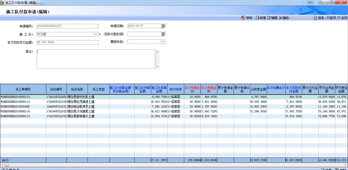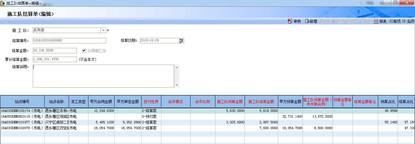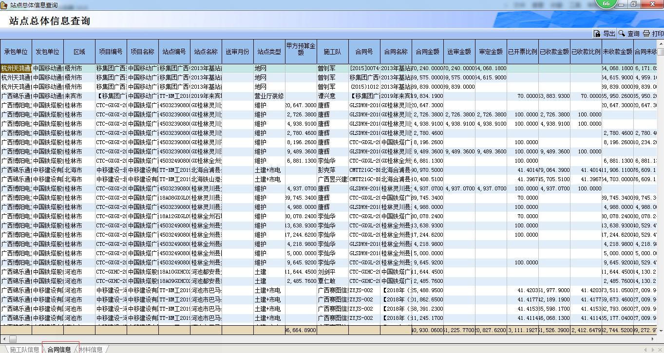 統(tǒng)計(jì)困難:施工隊(duì)派工單結(jié)算和支付(分專業(yè)),甲方多個(gè)站點(diǎn)簽約合同的結(jié)算、開票和收款。