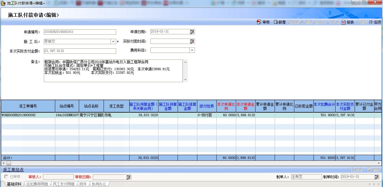 施工隊(duì)通過手機(jī)根據(jù)所在區(qū)域站點(diǎn),施工專業(yè)內(nèi)容,進(jìn)行結(jié)算付款申請(qǐng)。