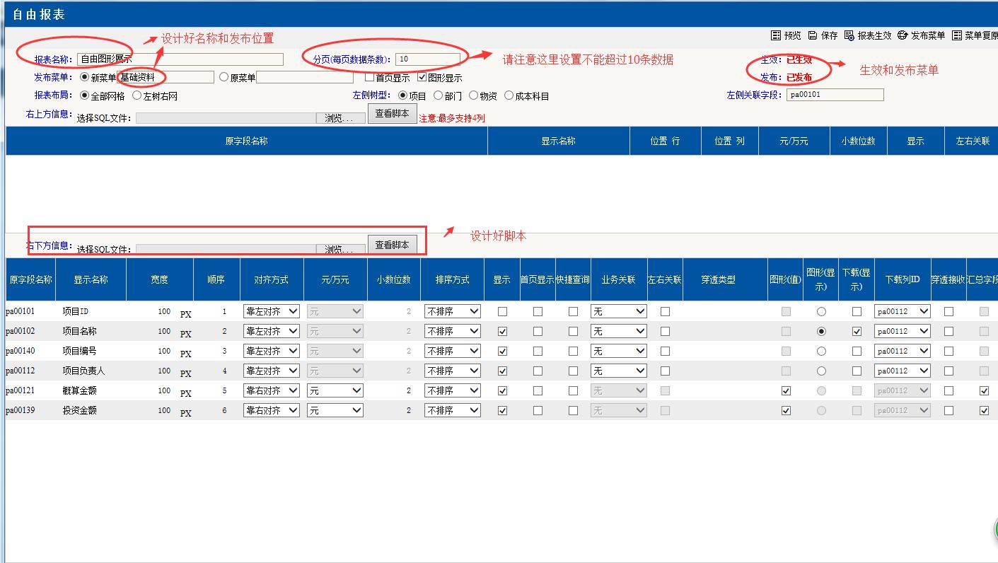 ②.設(shè)計(jì)自由報(bào)表(以查詢項(xiàng)目金額腳本為例)
