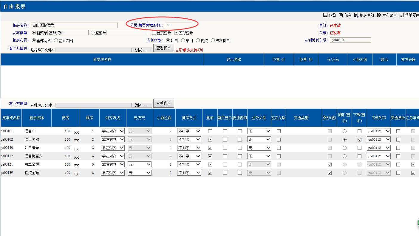 分頁(yè)的頁(yè)數(shù)顯示數(shù)量對(duì)應(yīng)在自由報(bào)表里設(shè)計(jì)的“分頁(yè)(每頁(yè)數(shù)據(jù)條數(shù))”,請(qǐng)注意這里的顯示數(shù)量有規(guī)定不能超過(guò)10條。