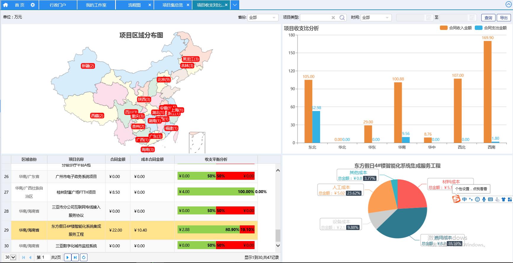 可直观看到各区域目收支情况Q各目成本?/p>