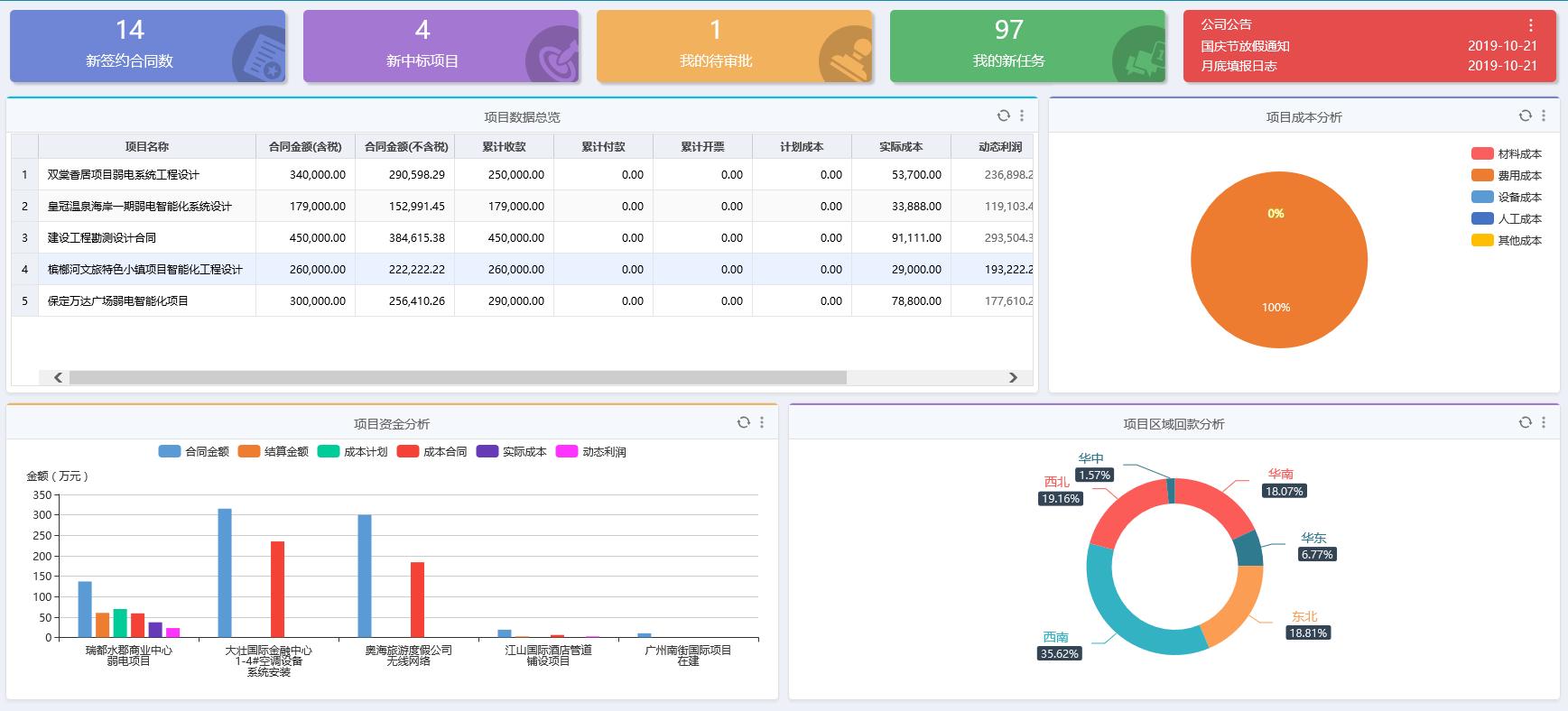 首页增加目数据总览、项目资金分析、项目区域收Ƒֈ析等报表?/p>