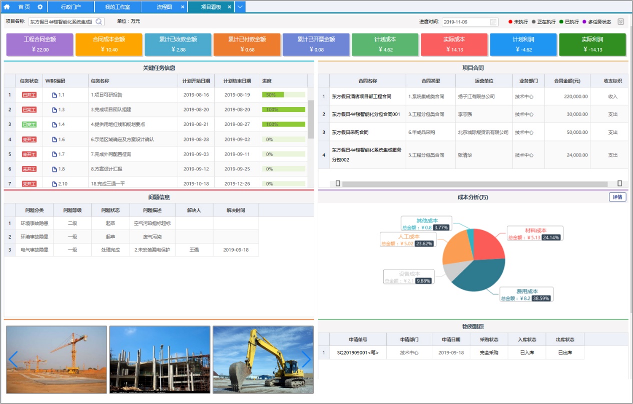 目l理可直接一屏查看项目各业务发生金额、项目进度、问题(sh)息、项目成本、现场日志、物资跟t等相关信息?/p>