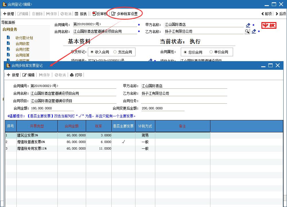 针对于合同需要开多种cd发票的情况,增加合同多税率设|功能?/p>