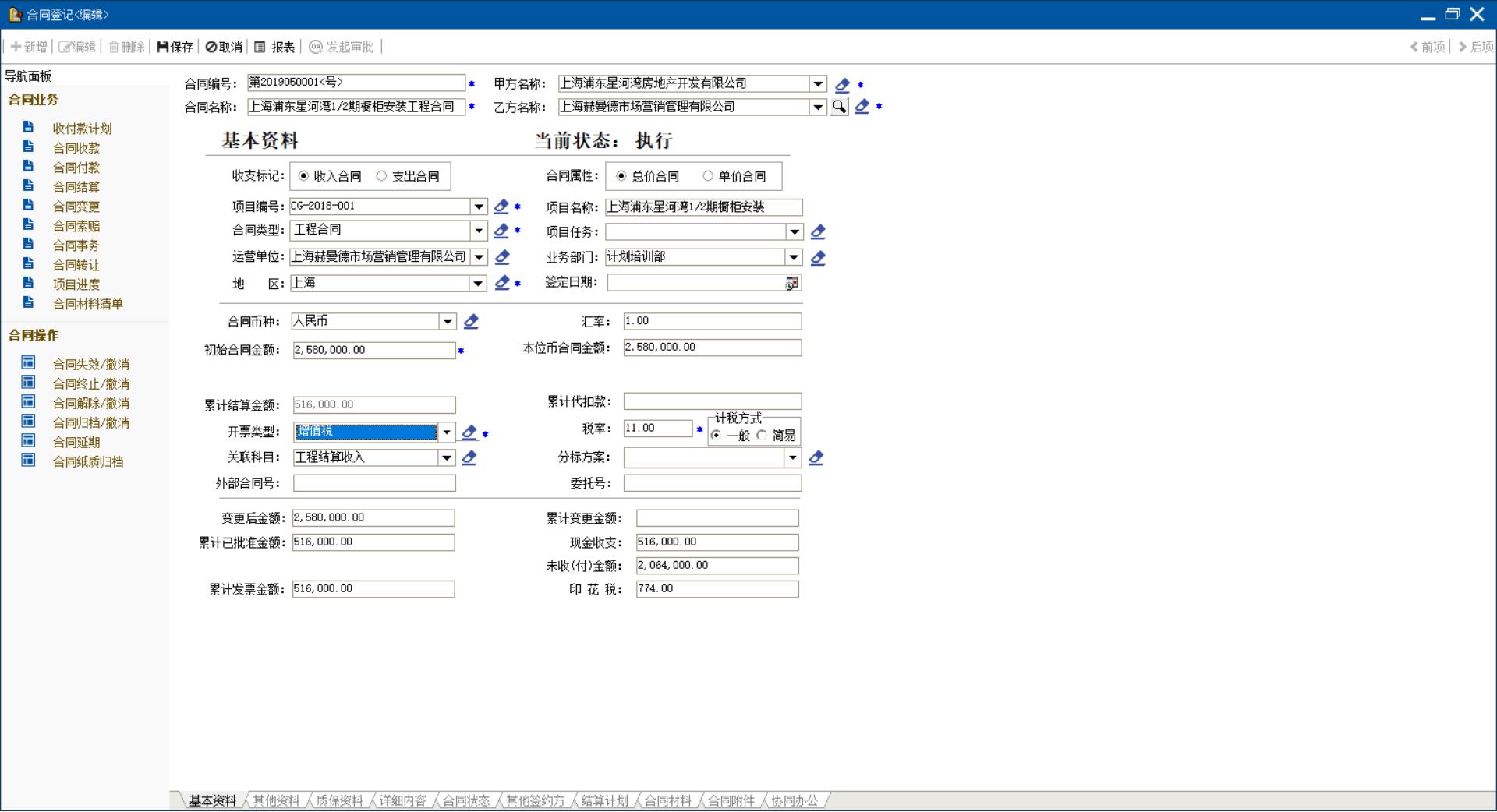 3?/strong>合同控Q实现对收入合同、支出合同进行分cȝ理,涉及(qing)合同{֮、合同变更、收ƾ计划、付?gu)ƾ计划、开、收付款、结等各类业务。实现能够结构化的管?方便l计分析和查询;