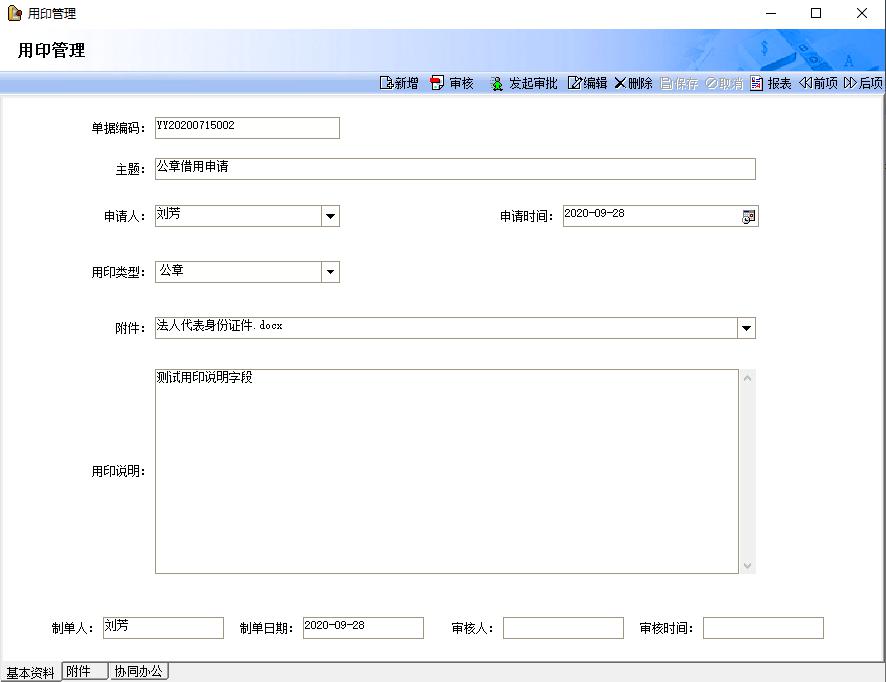 以下以“用印管理”功能点ZQ说明如何实现自定义Ud端功能: