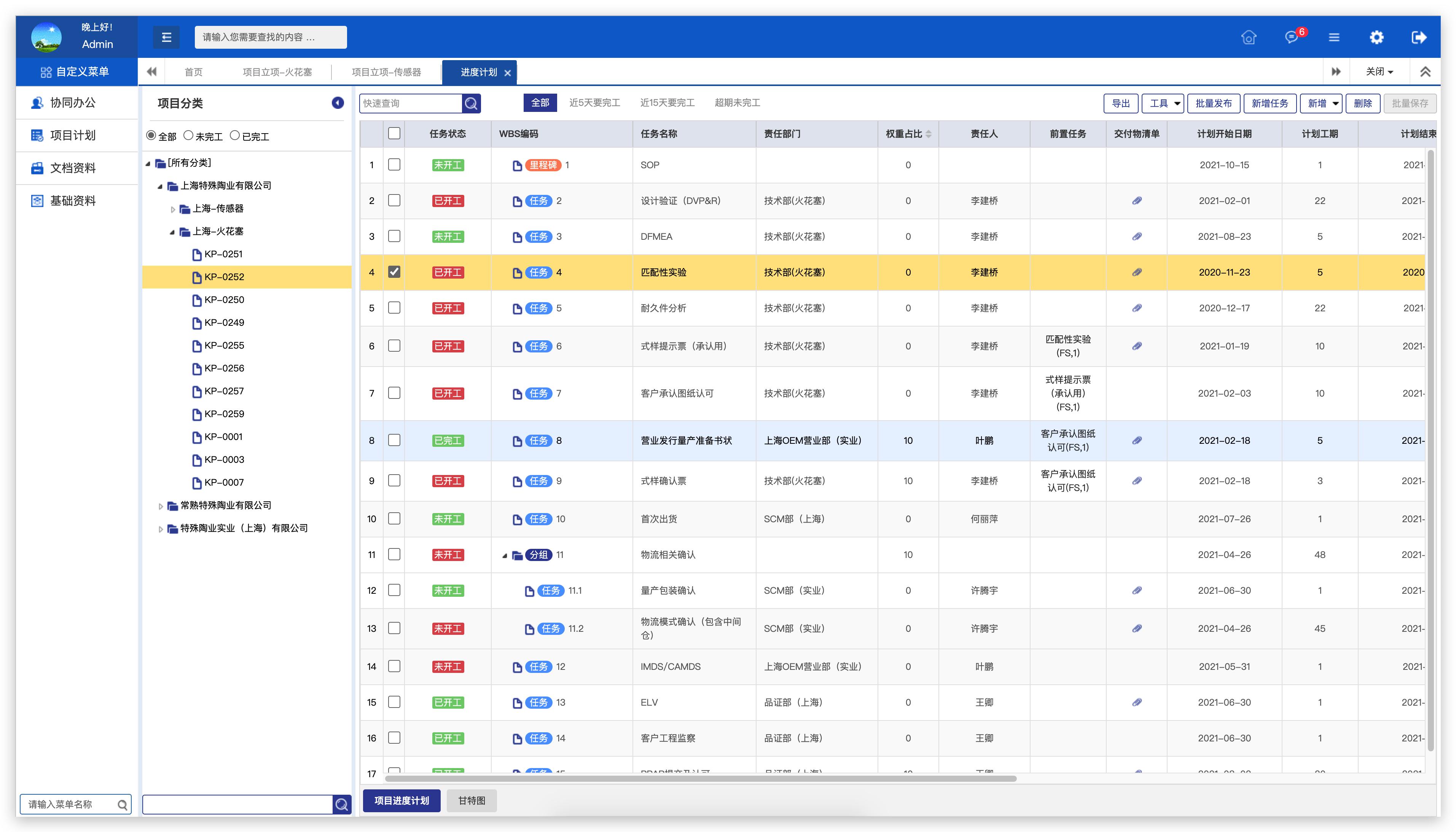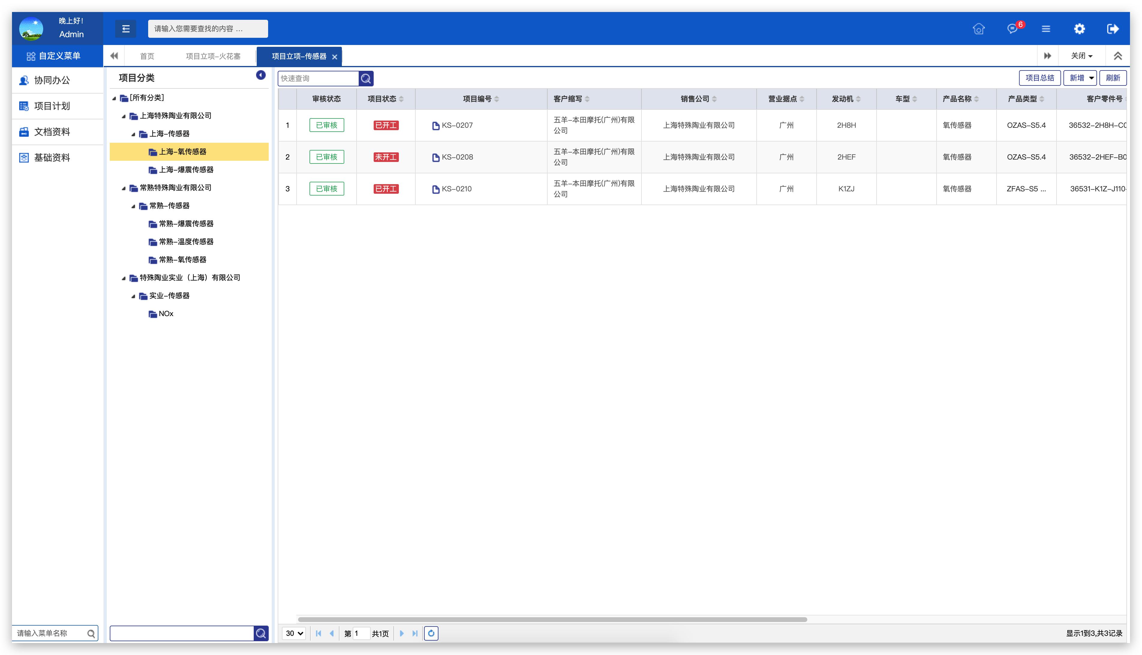 Ҏ(gu)陶业项目的cd先根据公品和三社分ؓ(f)上vQ实业,常熟Q然后根据各C负责的产品建立二目录Q如火花塞,温度传感器,氧传感器Q爆震传感器{,由PMS部门q行目立项新增。最l审栔R过后,建立本项目的完整q度计划?/p>