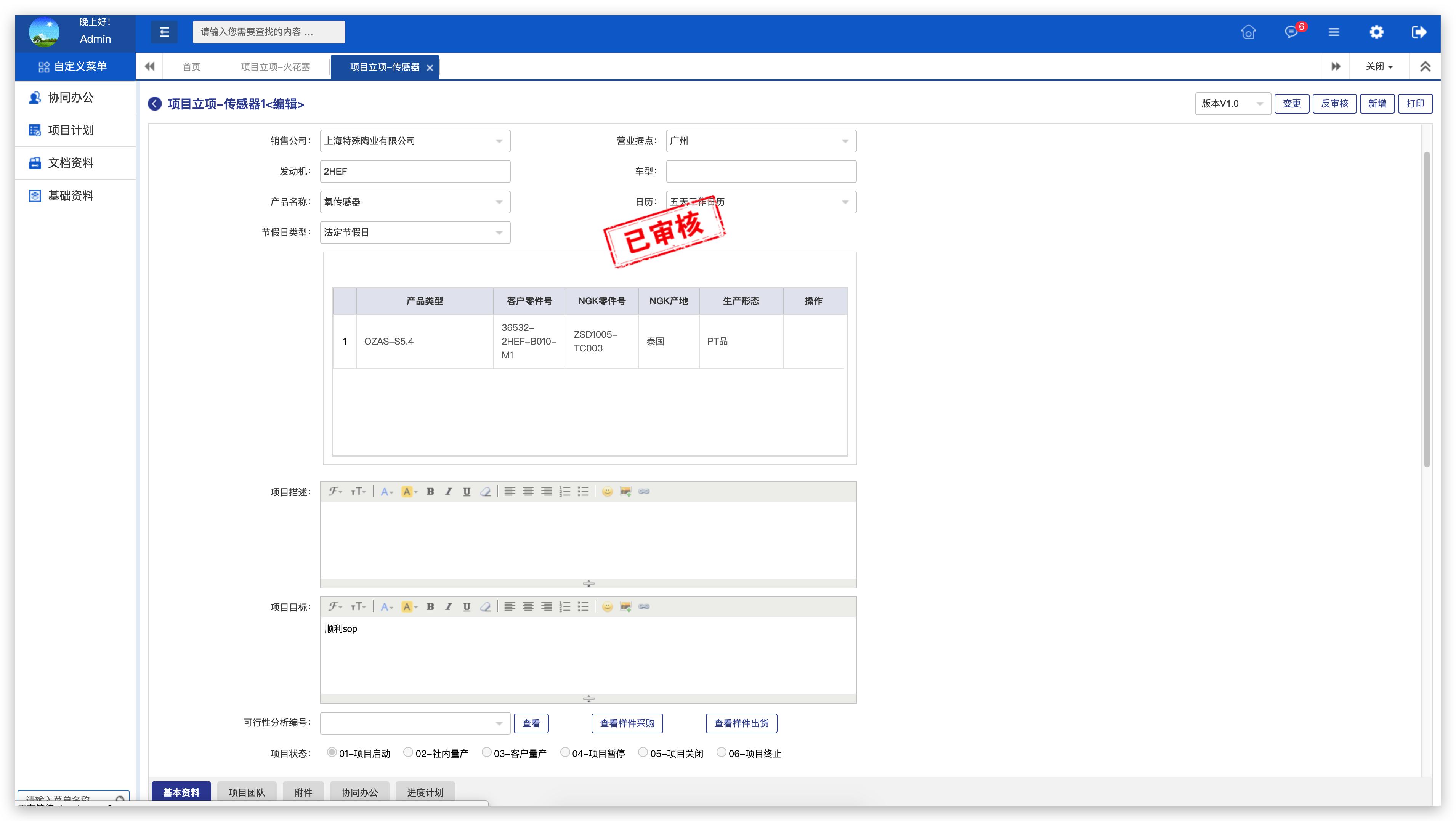 汽R属于国家支柱产业Q市场针Ҏ(gu)车相x心配件的需求也日益剧增Q作业典型的NGK/NTK的经q十多年q速发展,目前公司目及各w星生产线数量呈常q快速增长Ş态,Z提高工作效率Q规范各生产业务流E,q切需要通过目理pȝq一步规范管理、标准化各项业务程Qƈ实时监控各项目实时进展情c?/p>