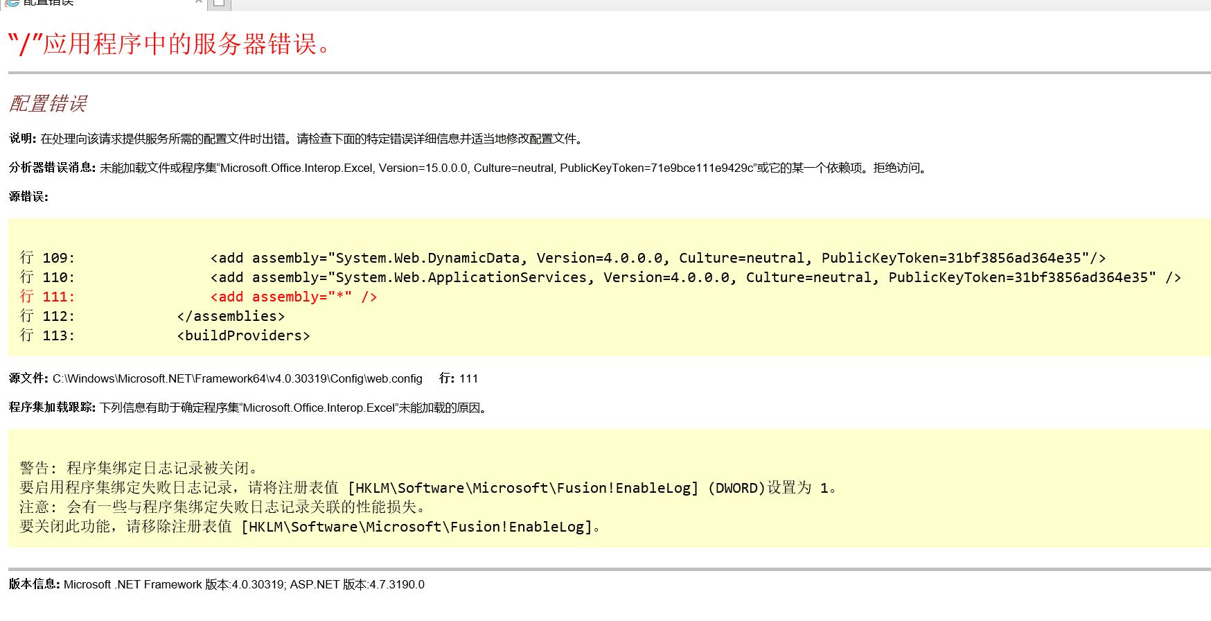 涓銆佹墦寮緗戠珯灝辨姤閿欙紝涓攚eb.config閲屾病鏈塭xcel鑺傜偣銆?/span>