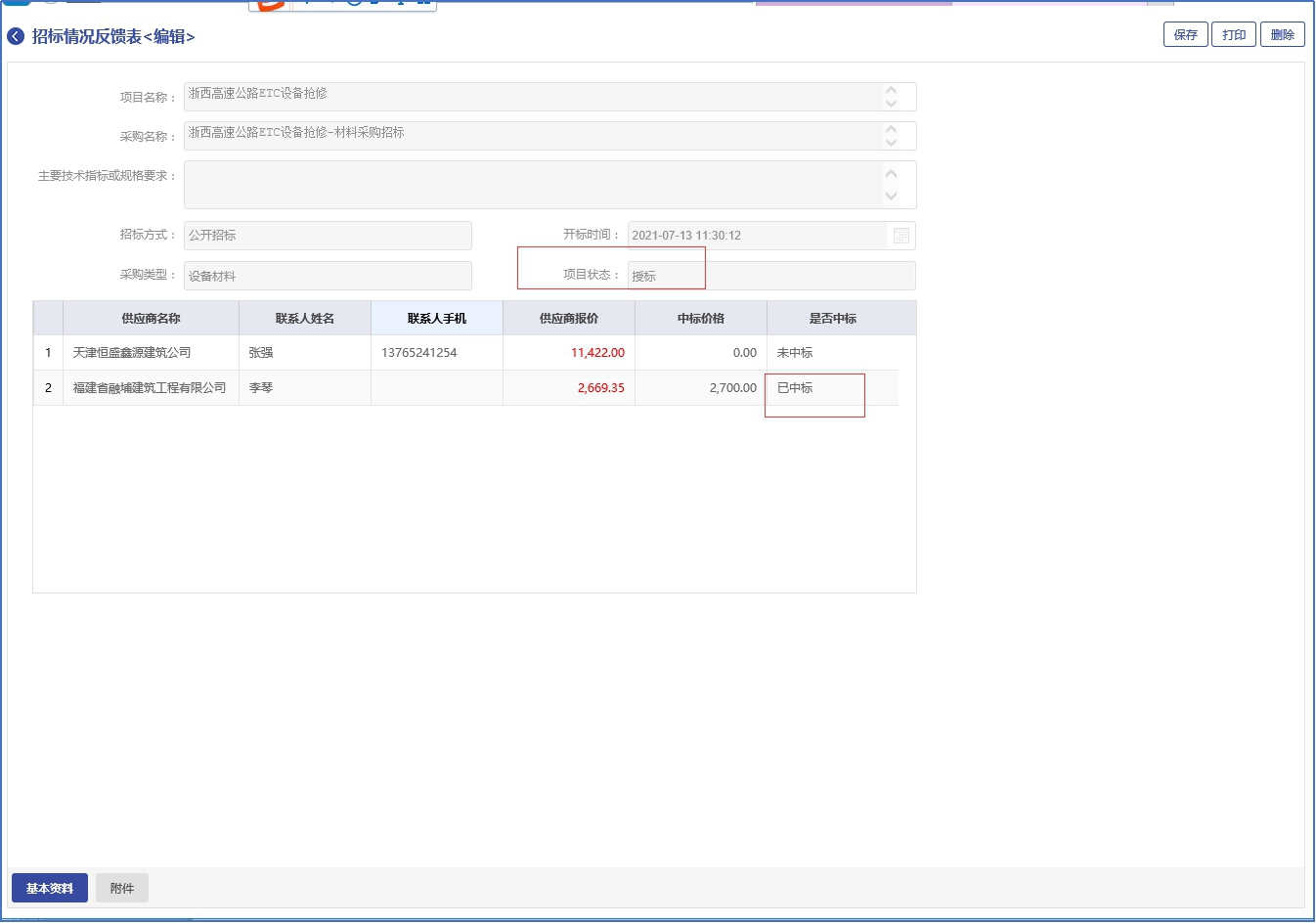 鎷涙爣鏂囦歡瀹℃壒鍙戝竷鍚庯紝璁″垝鍚堢害閮ㄥ湪姝ゆ煡鐪嬮渶鎷涙爣鐨勯噰璐」鍙?qiáng)鍚勪緵搴斿晢鎶ヤ圾P紝騫舵牴鎹緵搴斿晢紜瀹℃壒濉啓涓爣鍗曚綅銆傚彲絀塊忓埌紓嬪晢鎶ヤ環(huán)鐣岄潰銆傜敳鏂瑰湪姝ゆ煡鐪嬫嫑鏍囩殑鐩稿叧鎯呭喌錛屾牴鎹紑鏍囨椂闂村強(qiáng)渚涘簲鍟嗘槸鍚︿腑鏍囨洿鏂版嫑鏍囬」鐨勭姸鎬侊紝 騫舵牴鎹紑鏍囨椂闂存帶鍒朵緵搴斿晢鎶ヤ環(huán)鏄劇ず鏁板艱繕鏄?鍙楓?/p>