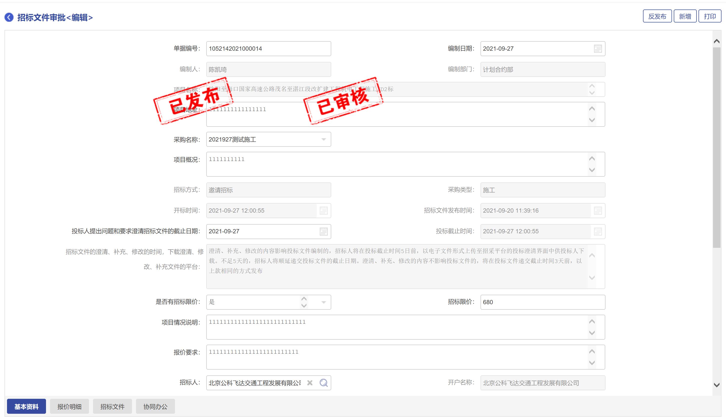 鎷涙爣璇風ず閫氳繃瀹℃壒鍚庯紝鎷涢噰閮ㄩ棬緙栧埗鎷涙爣鏂囦歡錛屽茍緇忚繃鐩稿叧閮ㄩ棬瀹℃壒錛屽鎵歸氳繃鍚庡彂甯冨埌鎷涢噰騫沖彴鐨勬嫑鏍囧叕鍛娿?/p>