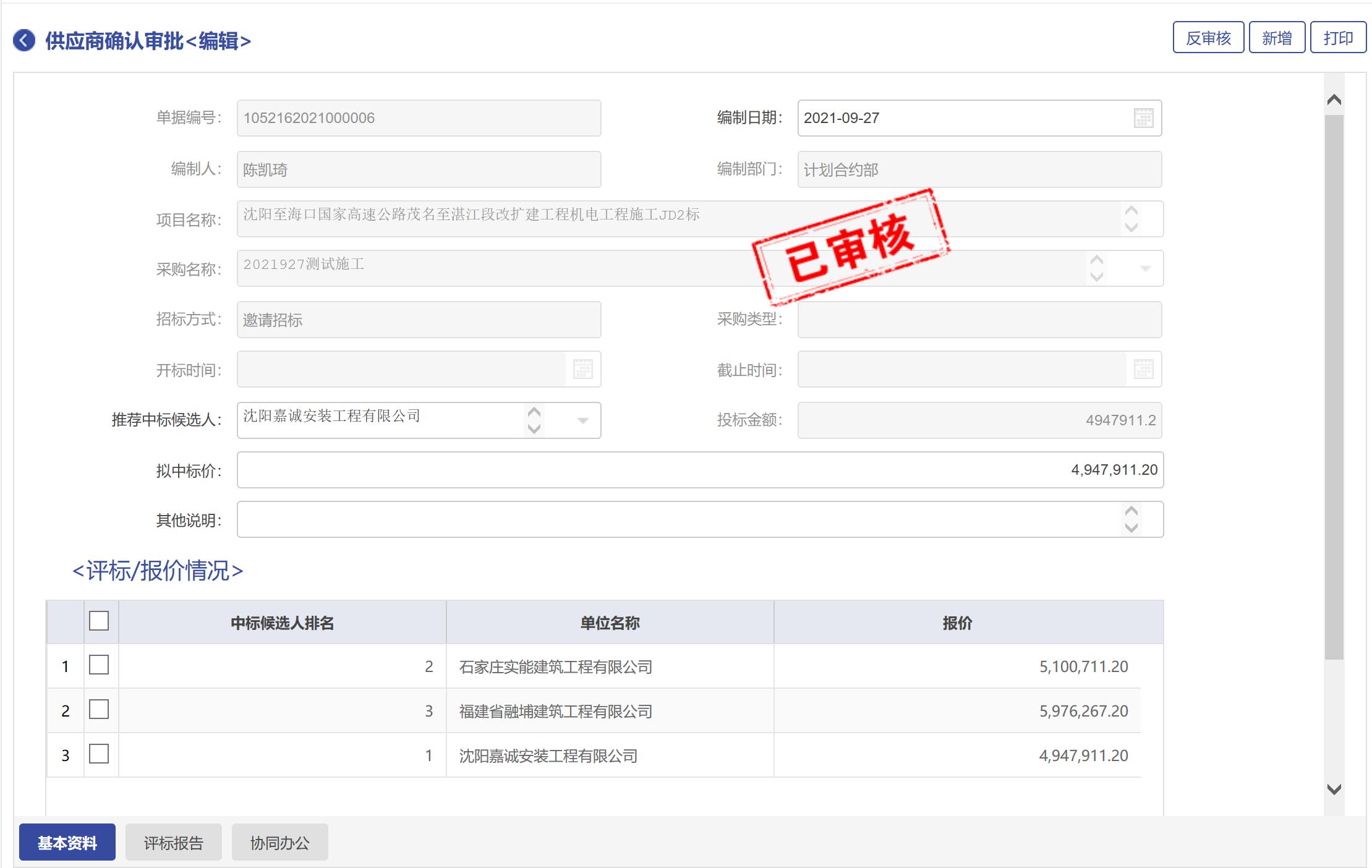鏍規(guī)嵁鍚勫渚涘簲鍟嗘姤浠鋒儏鍐墊嫑閲囬儴闂ㄨ繘琛岃瘎鏍囨帓鍚嶏紝閫夊畾鎷熶腑鏍囦緵搴斿晢鍚庡彂璧蜂緵搴斿晢紜瀹℃壒錛屾姤鐩稿叧棰嗗瀹℃壒銆?/p>