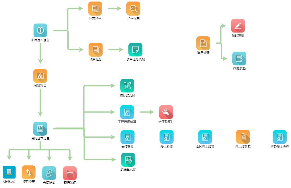 其中Q新建项目主要管理:(x)目基本信息、项目案资料、项目计划进度、项目实际进度填报、合同基本信息、材料认仗项目变?、合同洽商、现场签证、预付款支付、工E进度结、进度款支付、专w收、竣工验收、合同完工结、完工结款支付、胦务竣工决、质保金支付?/p>