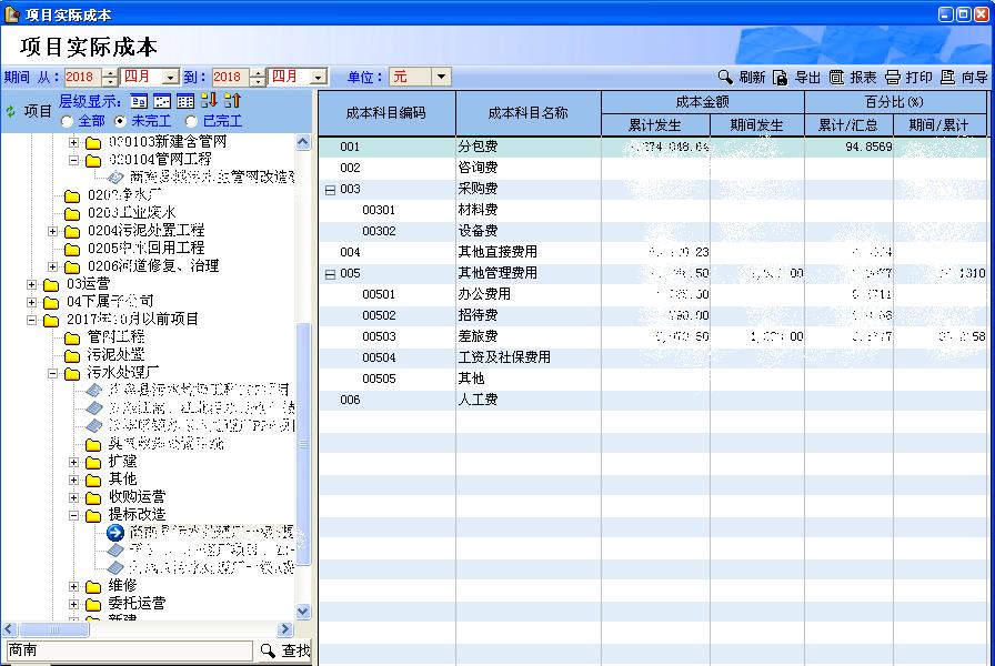 根據(jù)項目前期、項目準備、項目組織、項目實施、項目竣工、項目驗收等不同項目階段,涉及項目成本預(yù)算、成本計劃、實際成本等功能,全面管理項目過程中發(fā)生的材料設(shè)備成本、人工成本、分包成本和各種管理費用支出,多張匯總、明細成本分析報表,詳細記錄成本數(shù)據(jù),實現(xiàn)項目不同階段、項目間各項成本要素的對比分析,為成本控制和工程進度的掌控提供決策依據(jù)。