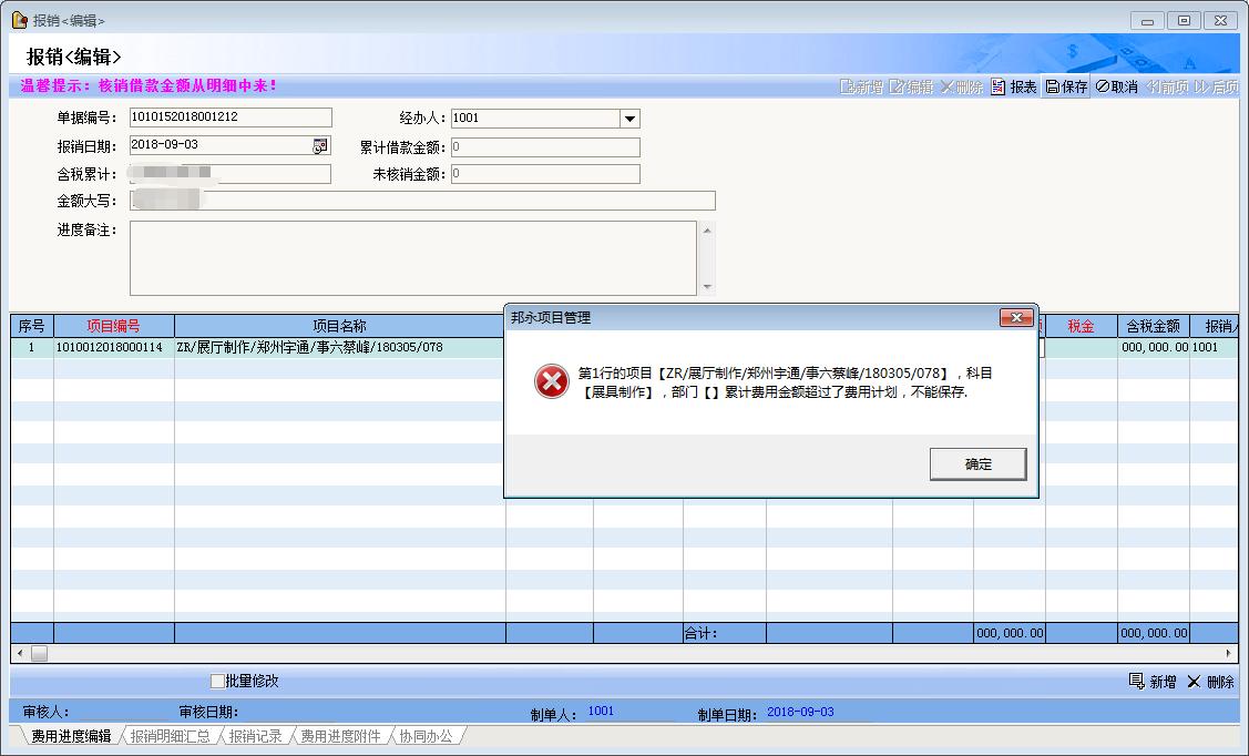 報(bào)銷時(shí),必須按照項(xiàng)目費(fèi)用計(jì)劃進(jìn)行報(bào)銷,不能超計(jì)劃,否則不能發(fā)起審批。