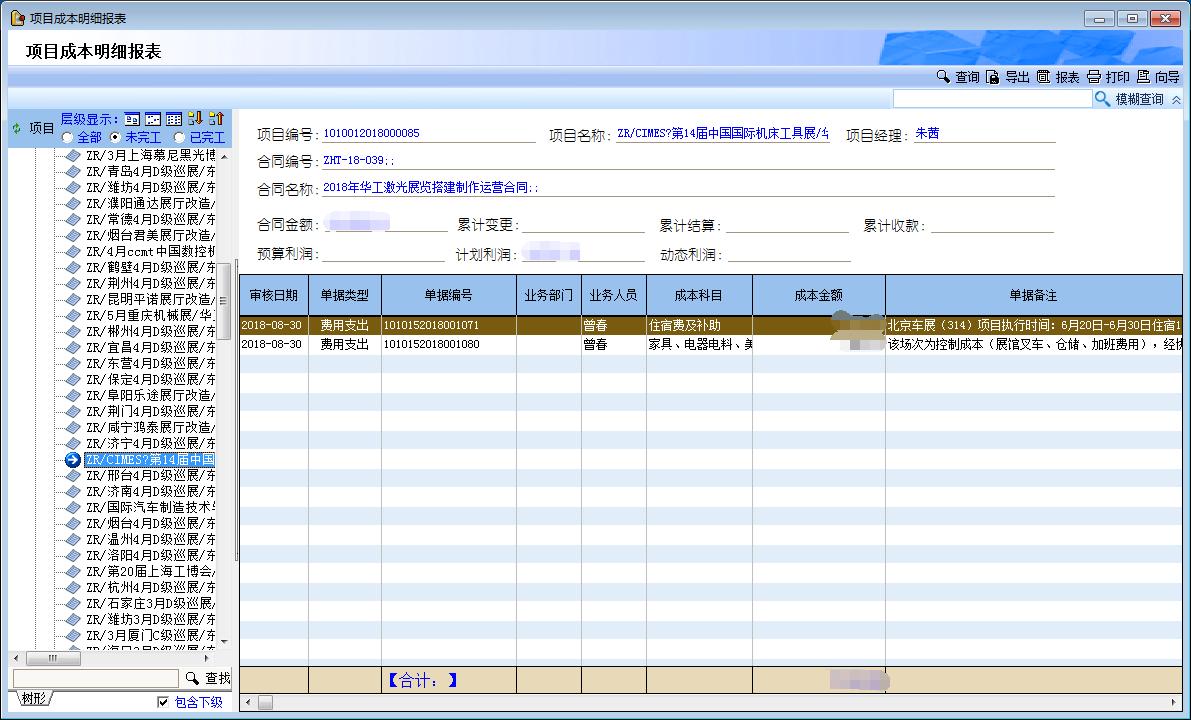 明細(xì)數(shù)據(jù),根據(jù)成本科目來展示各項(xiàng)統(tǒng)計(jì)指標(biāo)的明細(xì)數(shù)據(jù),并進(jìn)行逐級科目匯總。