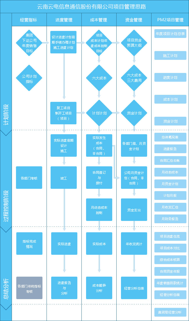 分析階段:進度報表,成本、合同、銷售、資金月度、年度報表。