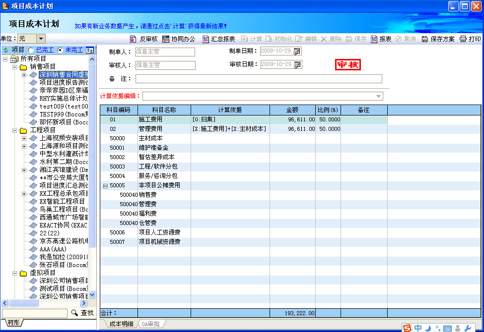 (1)、通過PM2系統(tǒng)的運行,公司對項目全過程的動態(tài)、實時監(jiān)控管理,克服了之前一次完成,最終算帳的靜態(tài)管理弊病,將項目預(yù)算與工程進度計劃的執(zhí)行監(jiān)督與控制納入實時的管理軌道。公司及項目各職能部門可隨時監(jiān)控項目的進度及預(yù)算執(zhí)行情況,以做出科學(xué)決策。