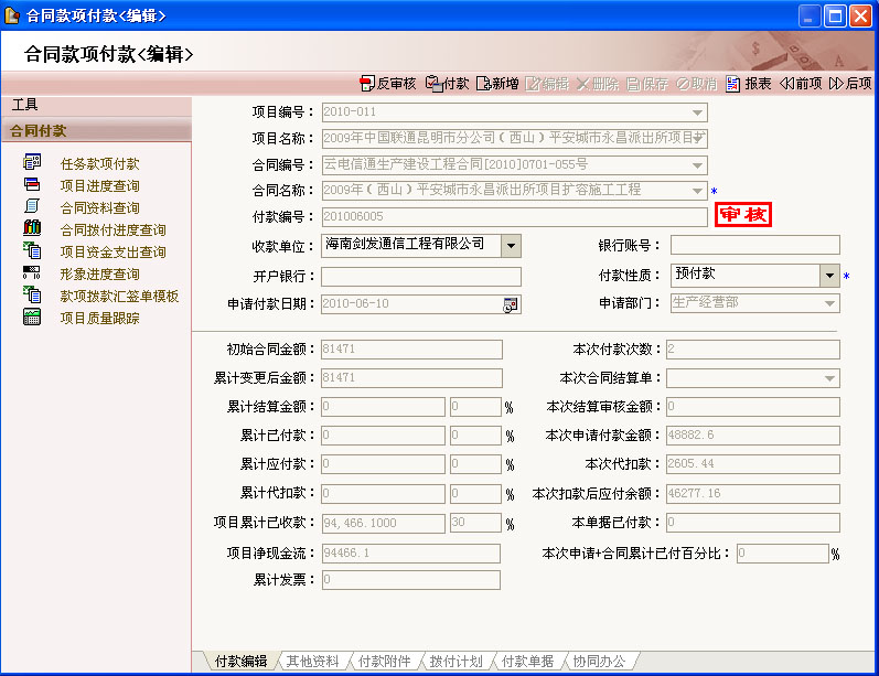 (5)實現(xiàn)對合同簽訂、變更、簽證、款項撥付的執(zhí)行管理;