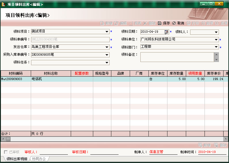 (5)物料管理