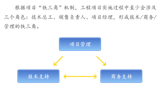 為提高向管理的效率,規(guī)范項目管理制度,建立項目經(jīng)理責(zé)任制、開工審批制、項目人員鐵三角一體化管理機(jī)制,提升項目管理的運(yùn)行水平,通過組織有序、管理規(guī)范、責(zé)任明確、協(xié)調(diào)有力的綜合運(yùn)行,實現(xiàn)工程項目管理工作的高效運(yùn)轉(zhuǎn)。