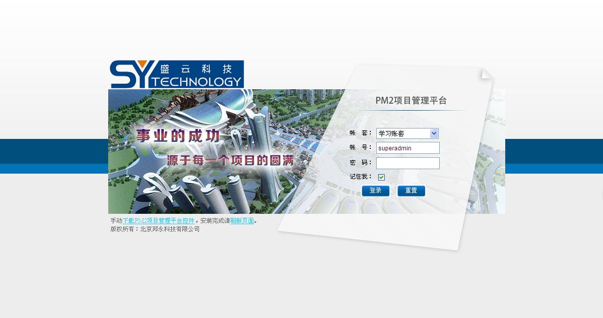 2014年12月盛云科技有限公司經(jīng)過多方審慎評估,最終選擇邦永科技PM2項目管理軟件(V8.0)為公司信息化管理平臺,核心業(yè)務(wù)為弱電、消防與系統(tǒng)集成工程總承包核心業(yè)務(wù)模塊,滿足核心業(yè)務(wù)的管理控制需要,實現(xiàn)各項目業(yè)務(wù)網(wǎng)絡(luò)化管理。包括:協(xié)同辦公、項目計劃、物資管理、合同管理、資金管理、成本管理、質(zhì)量管理、安全管理、竣工管理、內(nèi)部銀行、人力資源、文檔管理、自定義表單、維保管理、基礎(chǔ)資料等系統(tǒng)模塊;
