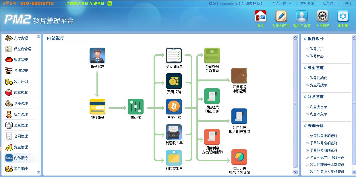 3)內(nèi)部銀行:這是盛云獨(dú)具特色的業(yè)務(wù)模式,學(xué)習(xí)阿里云的商業(yè)平臺用于管理多個掛靠合作伙伴項目;借鑒銀行的存/貸方式,結(jié)合PM2資金管理模塊的對項目資金的收/支,實現(xiàn)掛靠項目的內(nèi)部計息,并實現(xiàn)利息收入單和利息支出單的自動月結(jié)功能。同時,完善了項目資金各類統(tǒng)計報表和完善了對項目質(zhì)保金收/退業(yè)務(wù)流程,使其更貼近實際。即合作伙伴:如無資質(zhì)盛云提供,沒有投標(biāo)保證金盛云墊資,沒有資金購買原材料盛云提供借貸,沒有資金賬戶盛云負(fù)責(zé)代收代付等資金往來業(yè)務(wù),一句話:進(jìn)入盛云合作伙伴云平臺,盛云幫你實現(xiàn)你的工程項目管理與創(chuàng)業(yè)夢想。正真打造成了盛云科技的工程項目“淘寶網(wǎng)”。