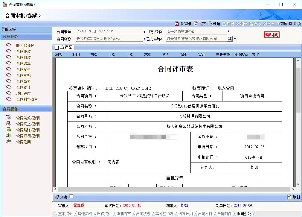 銷售合同、外協(xié)合同實現(xiàn)線上簽訂審批、進(jìn)度結(jié)算、合同變更、發(fā)票登記、收、付款管理